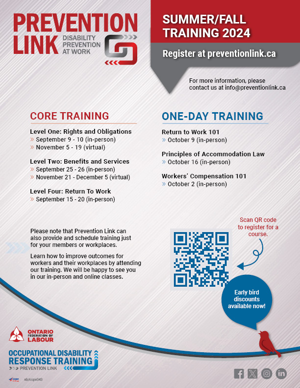 The Ontario Federation of Labour (OFL) and Prevention Link values the diversity and intersectionality of the people it hires. At the OFL / Prevention Link diversity means fostering a workplace where individuals’ differences are recognized, respected, appreciated and responded to in ways that fully develop and utilize each person’s talents, strengths, and passion to better the lives of all workers. The OFL / Prevention Link prioritizes hiring members from equity deserving groups and recruits, employs, and promotes, regardless of race, colour, gender, gender identity or expression, sexual orientation, disabilities, age or national origin. The OFL is an equal opportunity employer, applicants from equity seeking communities are encouraged to self-identify in their application.