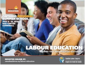 Should you have any questions about the Ontario Region Summer School, please contact the CLC Ontario Regional Office (Phone #: 416-441-3710 or 1-800-387-3500, ext. 222 or 221, or by email: ontario@clc-ctc.ca.)