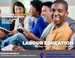 Labour education builds solidarity and knowledge. It teaches the skills unions need to represent their members and defend their rights using proven methods that allow adults of all backgrounds to learn. The Ontario Regional Summer School, on July 7012, will include Occupational Disability Response Training Level 4.