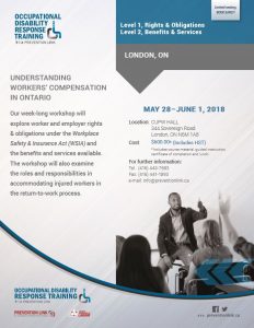 Join Prevention Link for a week-long workshop that will explore worker and employer rights & obligations under the Workplace Safety & Insurance Act (WSIA) and the benefits and services available. From May 28 – June 1, 2018, we are pleased to offer our Occupational Disability Prevention Training Level 1 and 2.