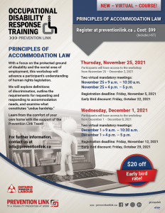 With a focus on the protected ground of disability and the social area of employment, this workshop will advance a participant’s understanding of human rights legislation. We will explore definitions of discrimination, outline the requirements for requesting and responding to accommodation needs, and examine what constitutes “undue hardship.”