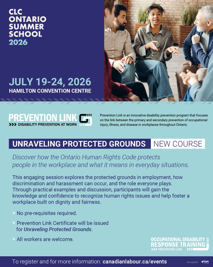 This year we are thrilled to be bringing back the highly sought after Canadian Labour Congress Ontario Summer School and Women’s School! Labour Education builds solidarity and knowledge, and it creates meaningful bonds that last a lifetime. In these exciting weeks of learning, union members will gain valuable skills in order to continue the fight in today’s workplaces, giving adults of all backgrounds the opportunity to learn how to defend their rights using proven methods. If your union wants to train the next generation of local activists or expand the skills that today’s leaders and activists already have, the CLC’s 2026 Ontario Summer and Women’s Schools are here to help our labour movement succeed.